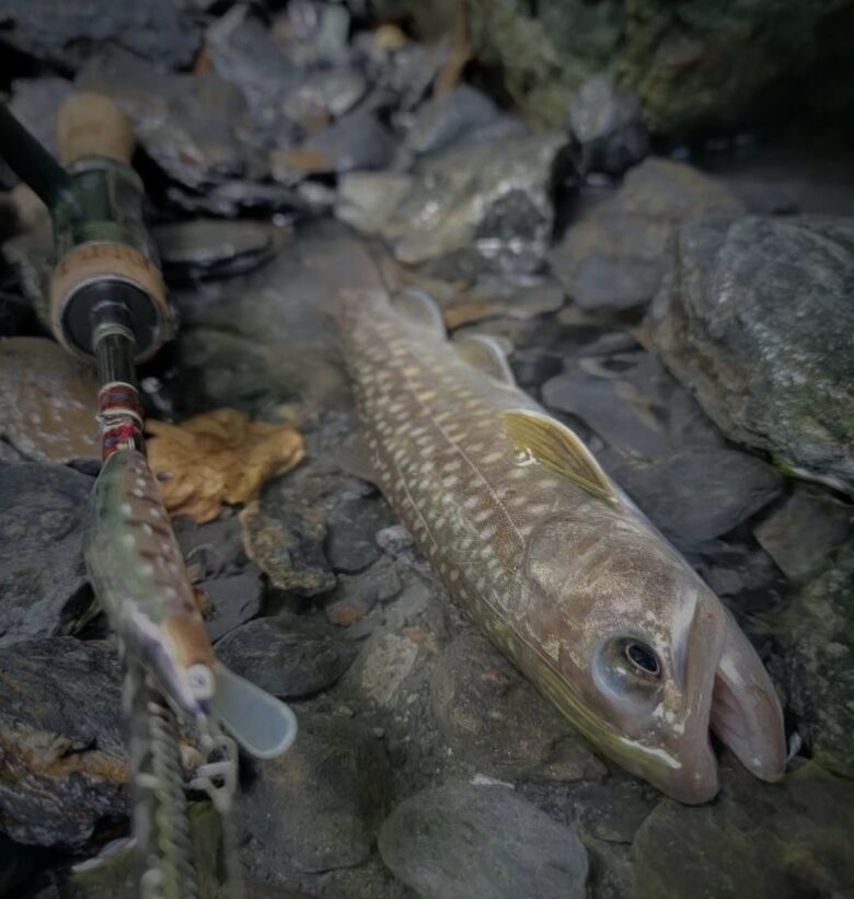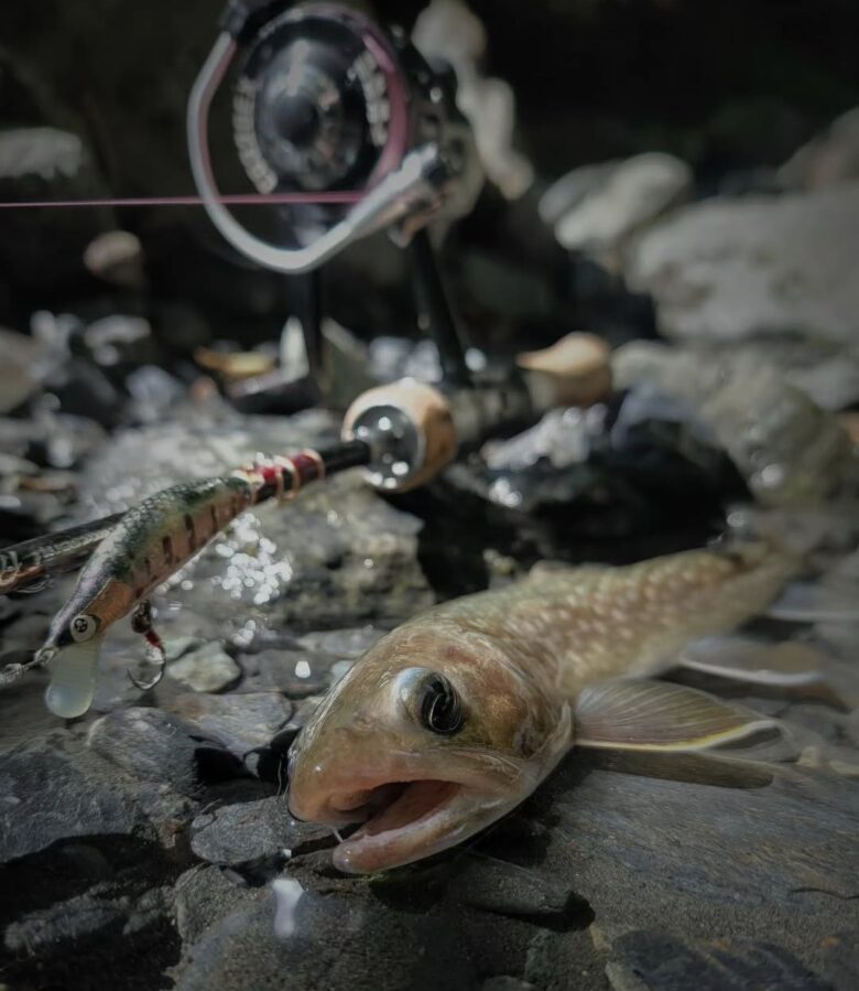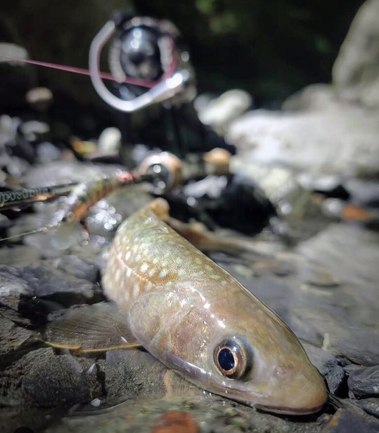 イワナが付くならこのポイントと、目星を付けていた石裏を丁寧に流し、沈めてアクションを一度入れたら