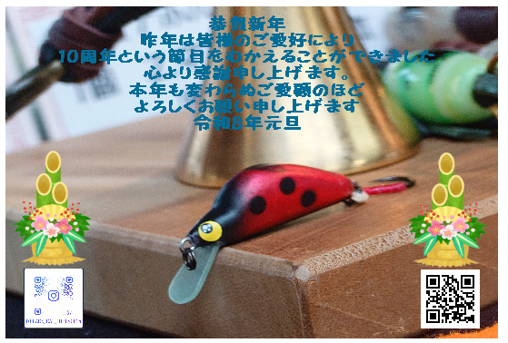 新年明けましておめでとうございます~🎍 昨年は新規お取り扱い店舗やイベント出店も増え、皆様には大変お世話になりました。心より感謝申し上げます。 今年の4月で、BLACKCATLures立ち上げ10周年という節目の年になりますので皆様には何か恩返しが... -